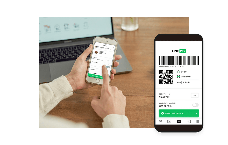 使用 LINE Pay 轻松进行 线上/线下支付。 LINE Pay 是一种简单、方便且安全的支付系统。无需携带钱包,即可自由付款。